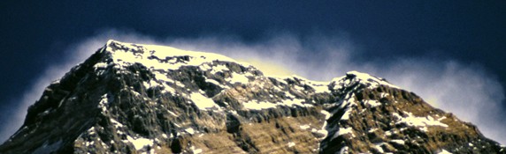 Gipfel des Everest (8850 m) mit Hillary-Step (8780 m) und Suedgipfel (8750 m) |