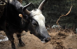 Die 2-tägige Wanderung nach NAMCHE BAZAR (runter auf 2600m und dann hoch auf 3400m) führt einen über Brücken, die man sonst nie betreten würde. Sie werden gemeistert, weil andere Rindviecher (vierbeinig und beladen) das locker schaffen. |