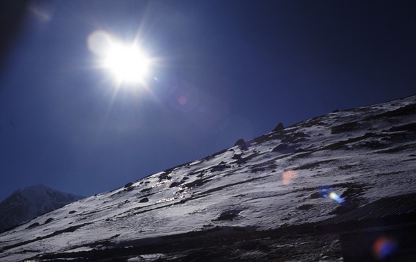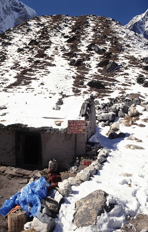 Nach einem Tag mit kurzer Rast beim "Hotel" Duglha (4620 m, 190 m unterhalb des Mont Blanc), ... |